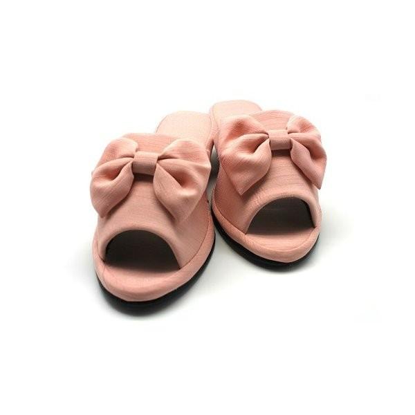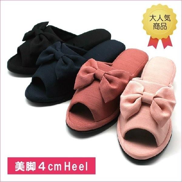 送料無料!かかとが潰れにくいおしゃれなシャンタンリボンヒールスリッパ