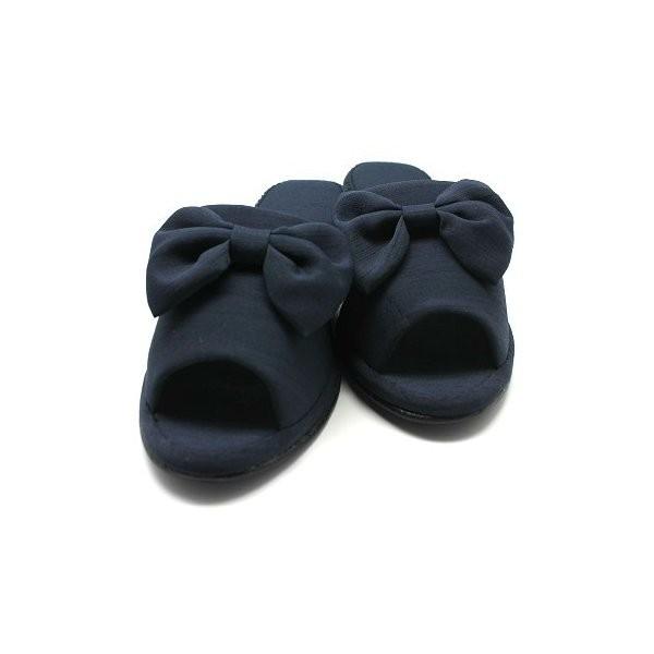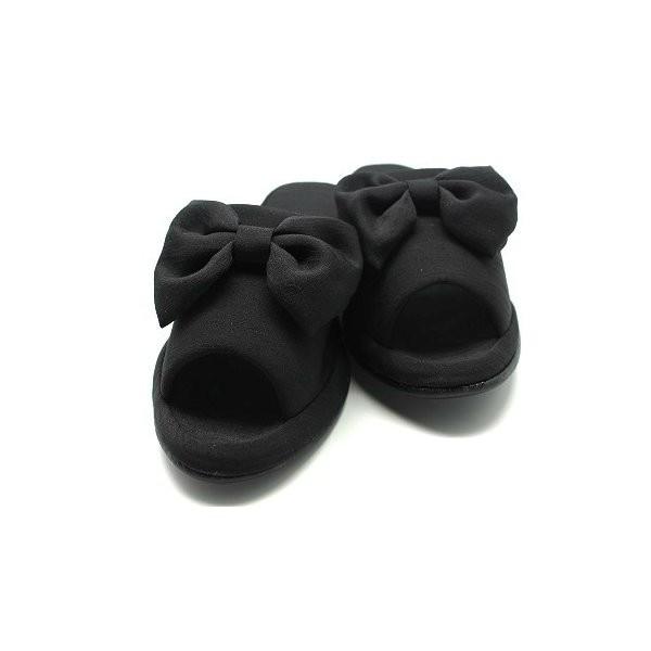 シャンタン リボン ヒール スリッパ おしゃれ ルームシューズ ヒール 黒 フォーマル M・Lサイズ