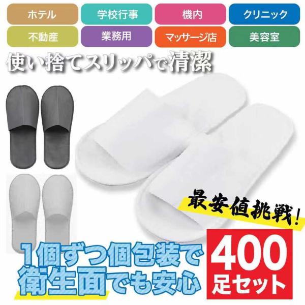 【最安値挑戦】使い捨てスリッパ 業務用 400足セット 送料無料 個包装 大きいサイズ コロナ対策 ホテル