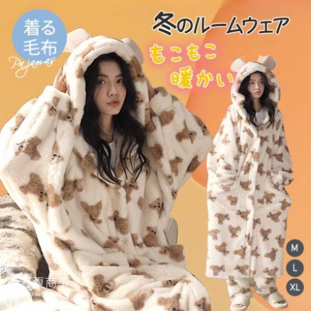 着る毛布 ルームウェア レディース もこもこ 着るブランケット 部屋着ロング丈 パジャマ 長袖 フード付き かわいい ビッグポケット 暖かい 春 秋 冬 あったか 柔らかい ふわふわ 軽量 保温 冷え対策 プレゼント