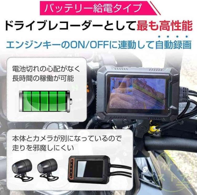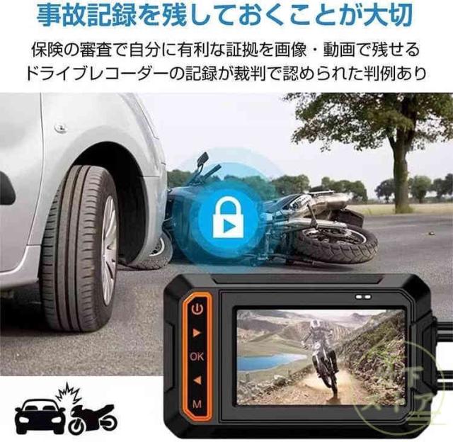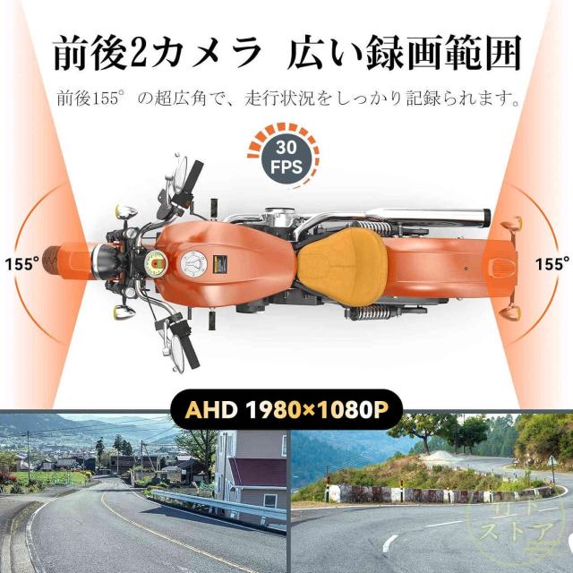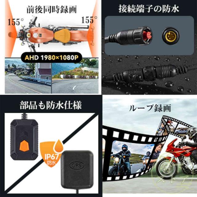 バイク用ナビ 防水 ドライブレコーダー 前後2カメラカープレイ 200万画素 155°広角 AHD1080P 耐熱耐久 常時録画 ループ録画 緊急録画 オートバイ用c07
