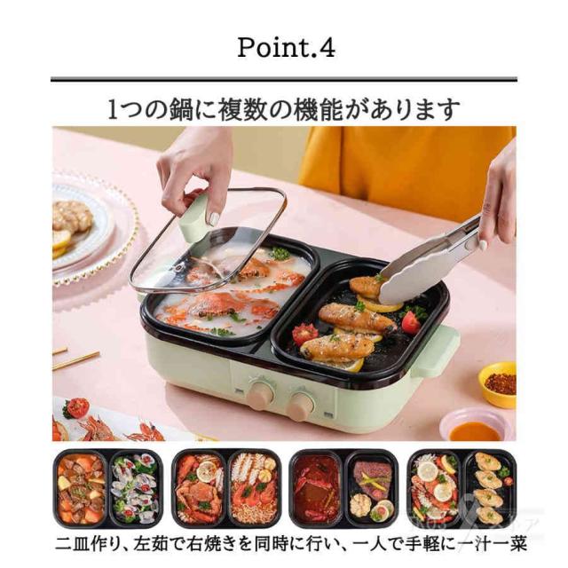 ホットプレート 焼肉プレート 焼肉 プレート 一人用 小型 鍋 無煙 電気ホット 電気鍋 電気グリル鍋 電気なべ 一人焼肉 一人鍋 無段階調整 家庭用 分別温度制御