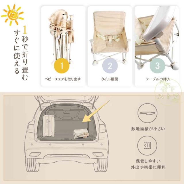 折りたたんで収納袋に入れて外出時に持ち運びに便利です。 無料インストール、3ステップの簡単な操作インストール。 折りたたんだ後はスペースが狭く、場所をとりません。片方の肩に収納袋に入れて持ち運べます。 母親は、レストランやカフェ、マザーパーティー、公園でのピクニックなどで外食するためにそれらを連れて行くことができます。 背面には大容量の収納バッグがあり、収納スペースを広げ、おもちゃやベビー用品をまとめて収納できます。