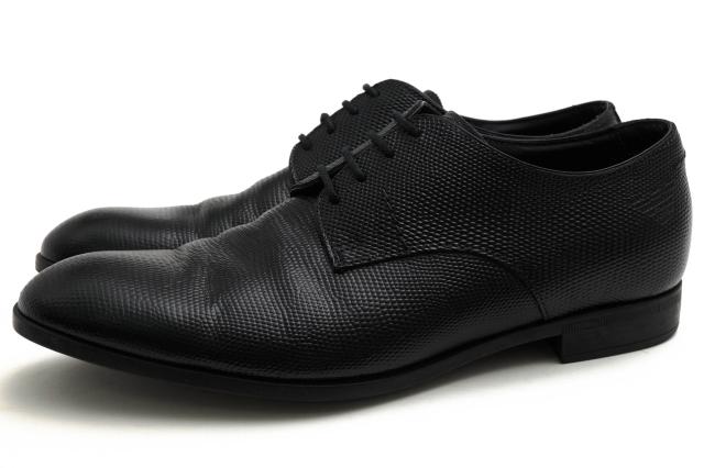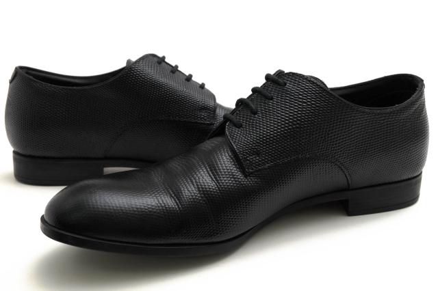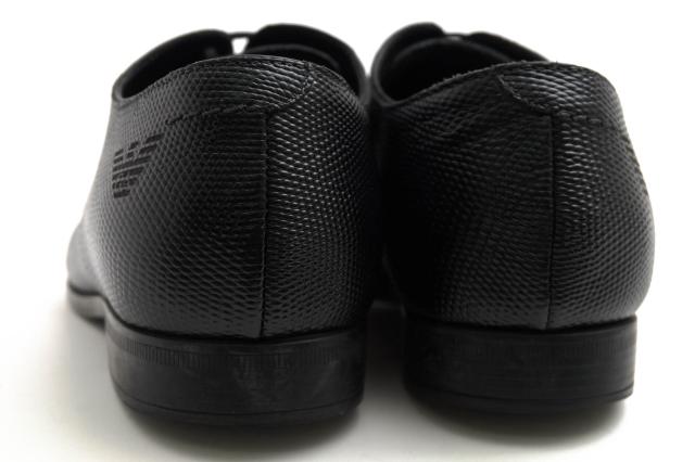 ○アルマーニ EMPORIO ARMANI 牛革 カーフ ビジネスシューズ X4C530 XF349 DERBY MATT CALF LIZARD PRINTED イーグルロゴ プレーン 中古