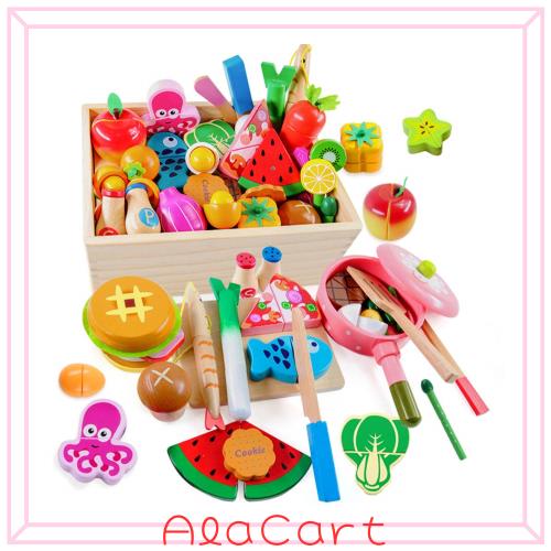 1.31点の木製おままごとセット,色鮮やかで可愛い野菜、果物、食器、調味料ボトル、肉などを含み、子供に料理の楽しみを体験させて。子供はおままごとの遊びを通して生活の中の食べ物野菜や果物を知り、色を見分けます。