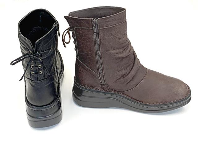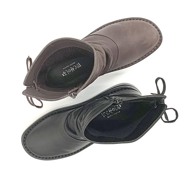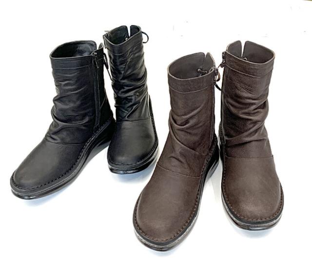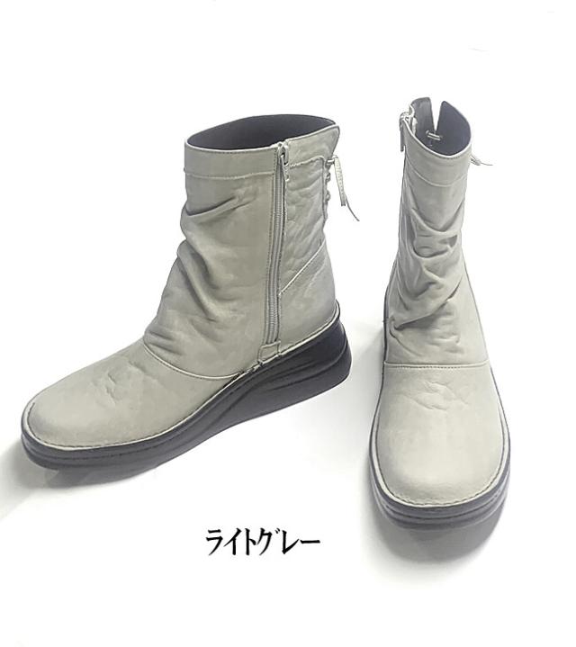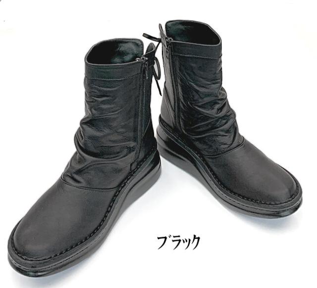 日本製 本革 ミドルブーツ レディース レザー ブーツ ウェッジ ローヒール 厚底 幅広 3e 4e 外反母趾 ショートブーツ くしゅくしゅ レースアップ 黒 ブラック ブラウン