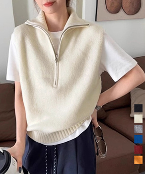 ハーフジップ ニットベストスタンドカラー