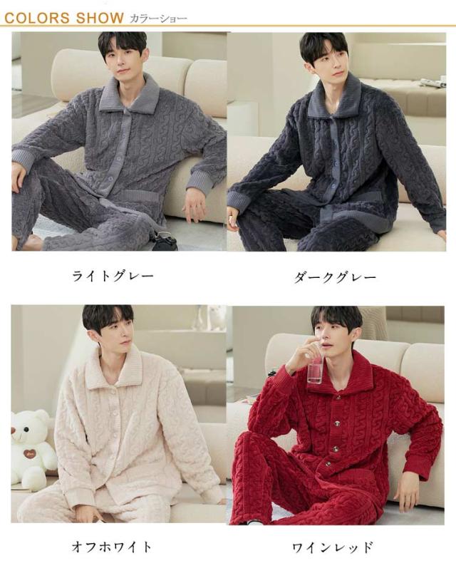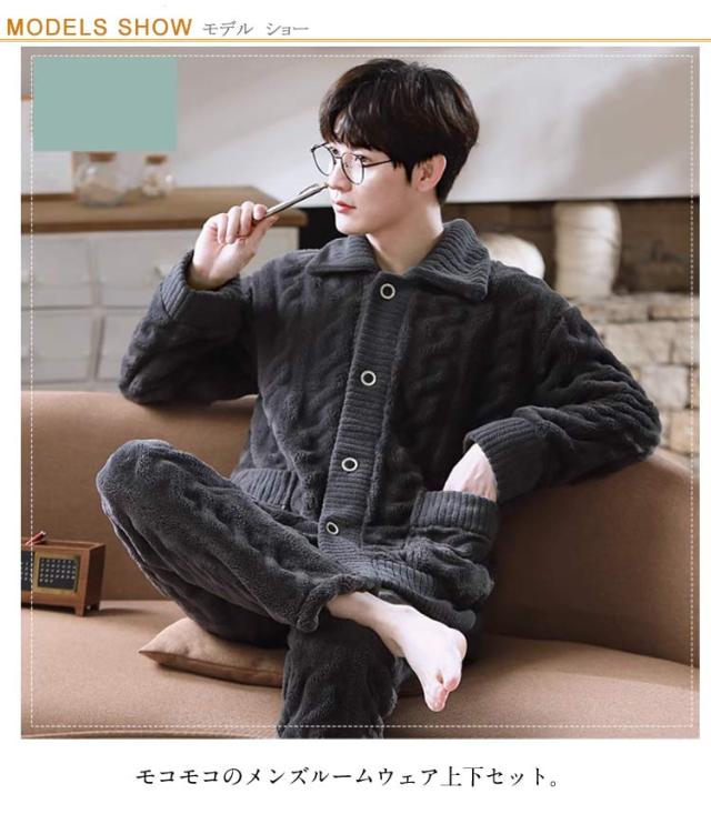 | モコモコのメンズルームウェア上下セット。 暖かくて気持ちいい秋冬向けの長袖メンズパジャマ。 モコモコとした厚手生地を使い、寒い季節に優しくて暖かい守りを与える柔らかな肌触りと軽い着心地に感動!! お家でのリラックスタイムからヨガの練習・カジュアルスタイルまで、幅広く大活躍してくれます。 結婚祝い、クリスマス、記念日プレゼントなどにプレゼントとして大人気です。 | |