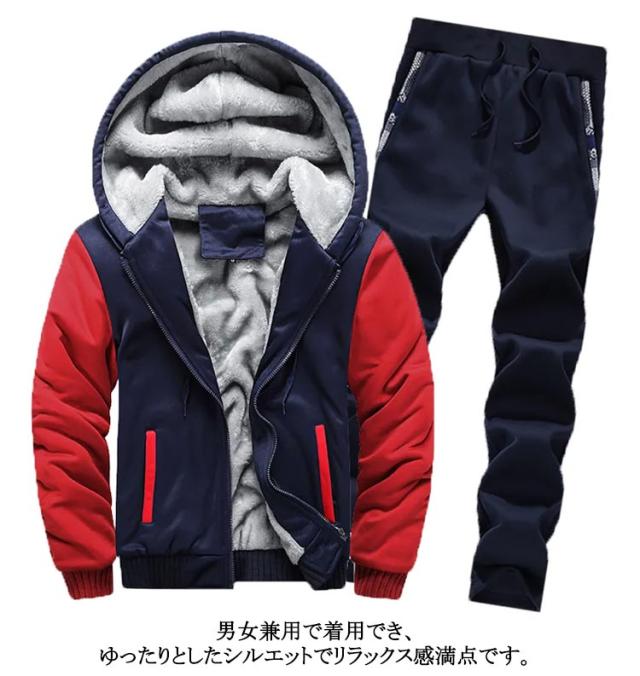 | M-5XL!暖か超裏起毛モコモコセットアップです! 肌触りが気持ちイイ抜群の着心地 ボアフリース素材は、ふわっと軽い毛布を着ている感覚で、暖かくソフトな着心地です 裏起毛は保温性能も抜群で、寒い季節にピッタリの持っておきたいアイテムです 袖口と裾はリブ仕上げで防風性にも優れております。 男女兼用で着用でき、ゆったりとしたシルエットでリラックス感満点です。 | |