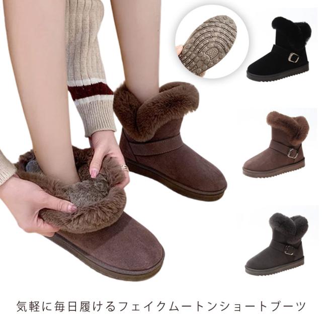 スノーブーツ ファー付き フェイクムートン スノーブーツ ショートブーツ レディース 冬用 防寒靴 暖かい 厚底 送料無料