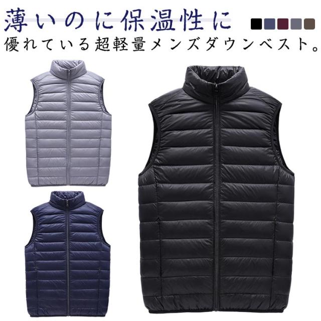 ダウンベスト ノースリーブ アウター メンズ Vネック 軽量 ベスト 防寒 服 軽度撥水 冬 暖かい あったか インナーダウン 薄手 ベスト カジュアル ジレ ダウンベスト 通勤通学 登山 アウトドア 釣り