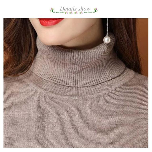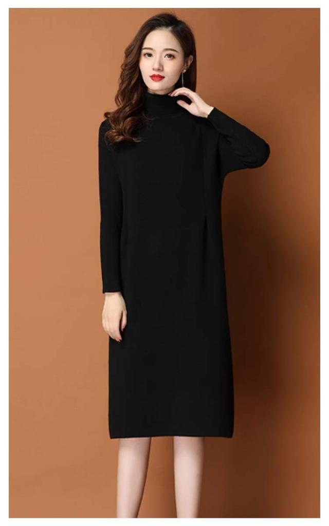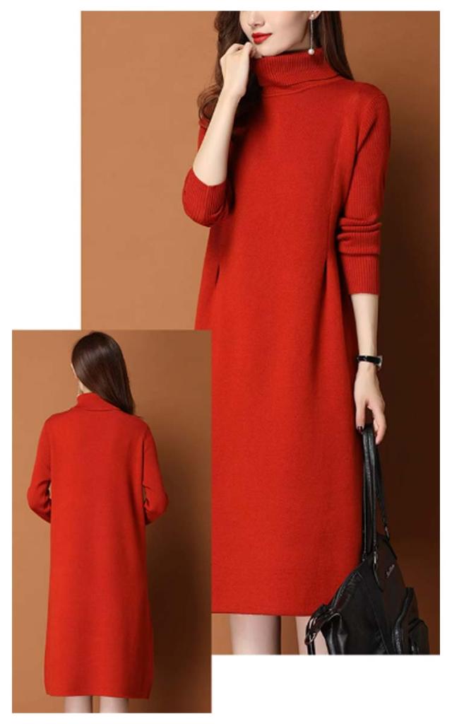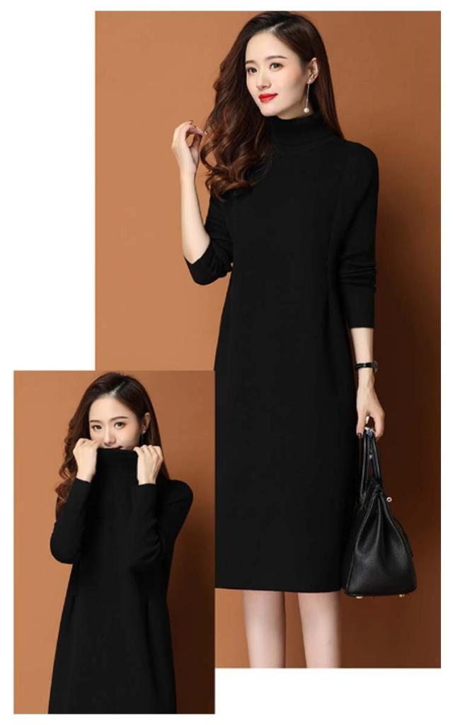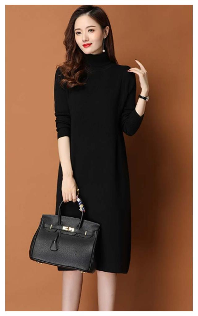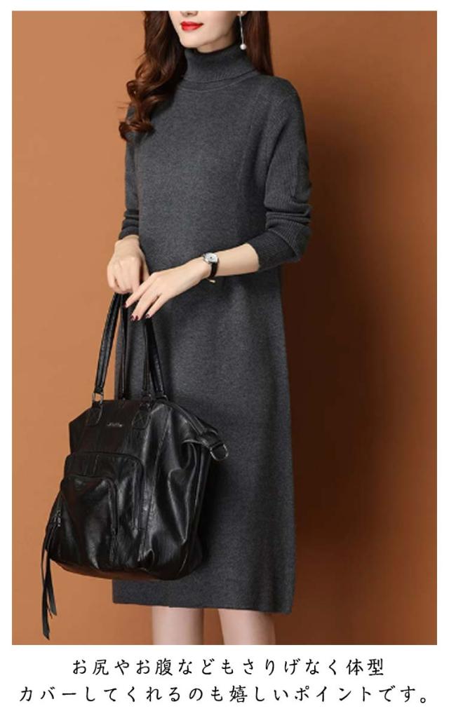 リブニット 無地 膝丈 ハイネック ニットワンピース ハイネック レディース ひざ下丈 チュニック 秋冬 ニット ワンピース インナー 長袖 ロングワンピース 無地 体型カバー オシャレ