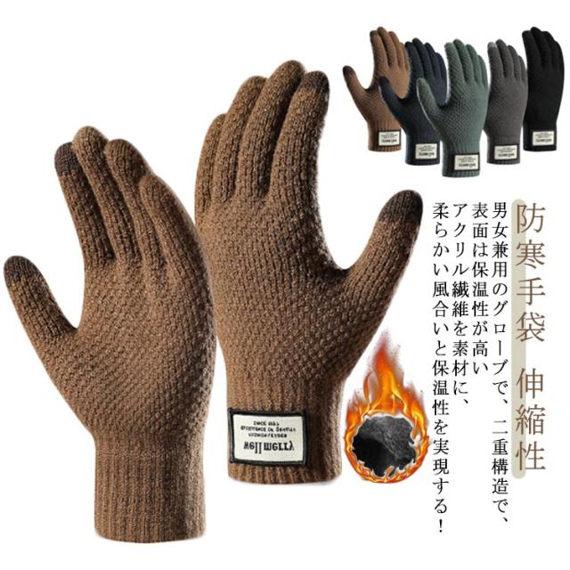 防寒グローブ 手袋 暖かい スマホ対応 ふわふわ裏起毛 ニット手袋 防寒手袋 冬 ニットグローブ アウトドア手袋 自転車手袋 メンズ用 メンズ 二重構造 伸縮性 手にフィット スキー ランニング 通勤