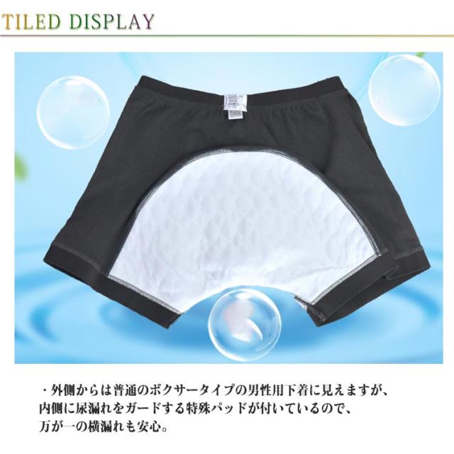 | ・万が一の尿漏れでも恥ずかしい思いをしない尿漏れパッド付き男性用下着 ・外側からは普通のボクサータイプの男性用下着に見えますが、内側に尿漏れをガードする特殊パッドが付いているので、万が一の横漏れも安心。 ・ビジネス通勤通学やバス旅行、スポーツにもお使いいただけとっても便利で安心です。 | |