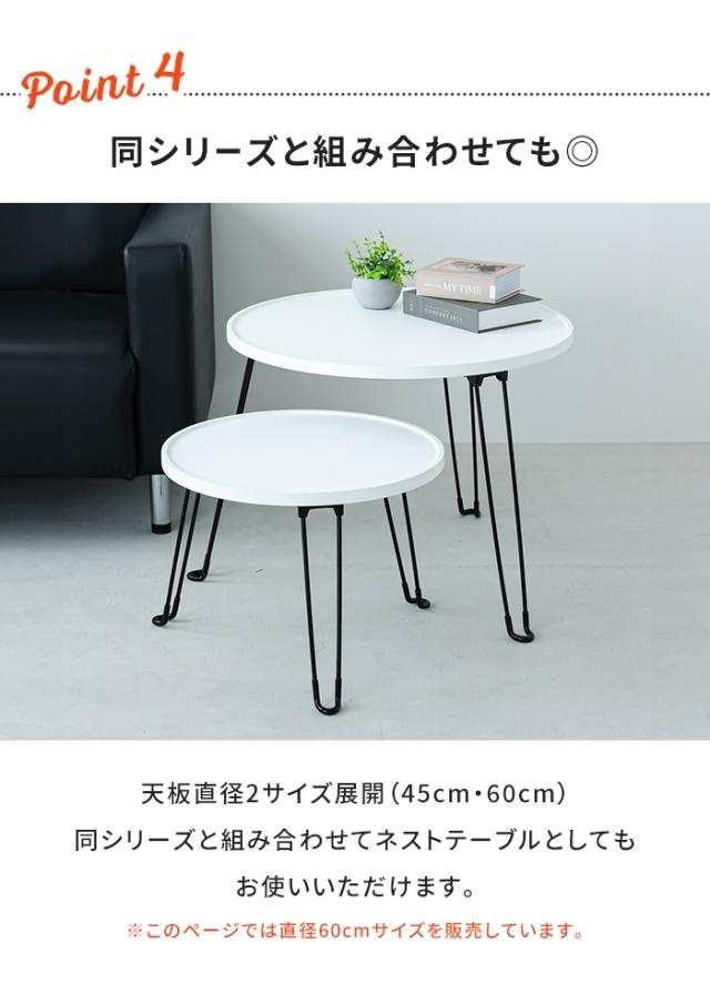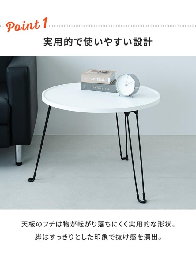 キーワード: テーブル サイドテーブル 折りたたみ式 円形 幅60 ラウンドテーブル 丸テーブル シンプル フチ付き ゴムカバー付き モダン 折りたたみテーブル ローテーブル ミニテーブル 円形テーブル 飾り台 作業台 折れ脚 折り畳み 省スペース コンパクト ソファサイド ベッドサイド ワンルーム リビング 寝室 白 ホワイト