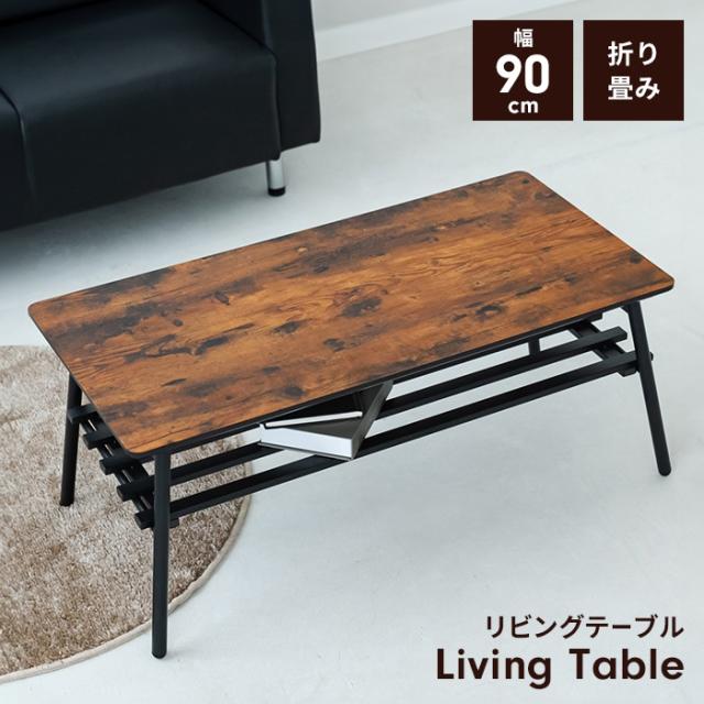 【値下げ】センターテーブル ローテーブル テーブル リビングテーブル 幅90 収納棚付き 折りたたみ 木目調 西海岸 高級感 ヴィンテージ