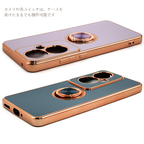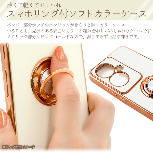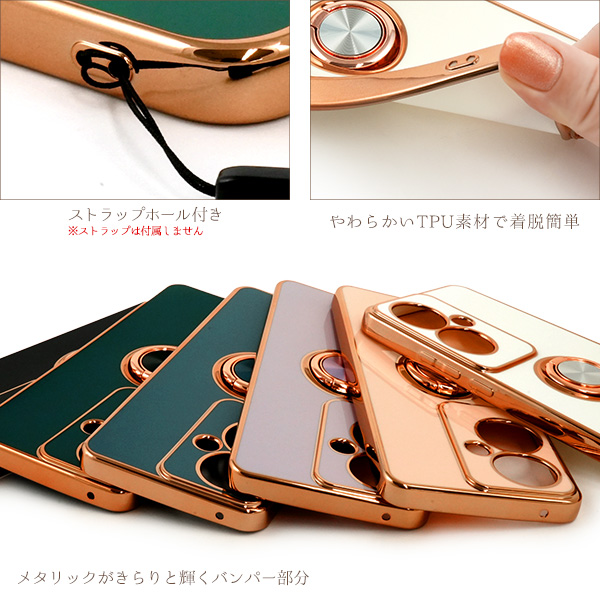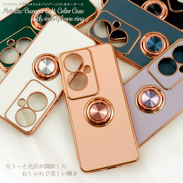 スマホケース OPPO Reno11 A スマホリング付き ソフトケース メタリックバンパー 装着簡単 おしゃれ シンプル 可愛い 携帯ケース お洒落 韓国風 携帯カバー 背面保護 メタリックカラー スマートフォンケース スマホカバー シンプル 上品 大人っぽい 人気 デザイン