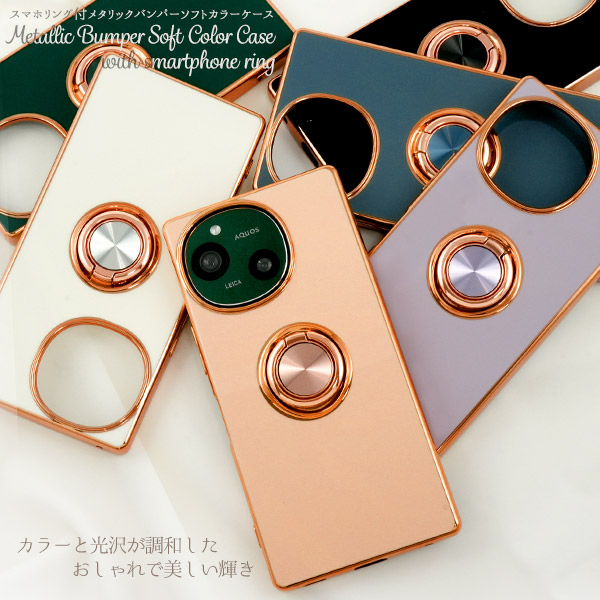 スマホケース AQUOS R9 SH-51E A401SH SH-M28 / AQUOS R10 SH-51F A501SH SH-M31 スマホリング付き ソフトケース メタリックバンパー 装着簡単 おしゃれ シンプル 可愛い 携帯ケース お洒落 韓国風 携帯カバー 背面保護 メタリックカラー スマホカバー シンプル