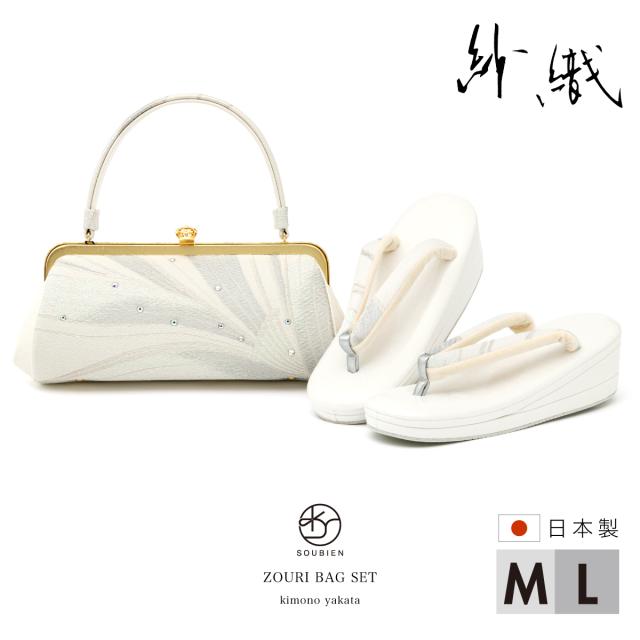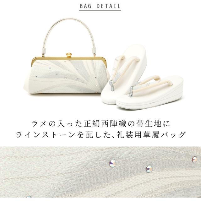 草履バッグセット レディース 礼装 留袖 訪問着 振袖 袴 シルバー 銀 ホワイト 白 正絹 西陣織 フォーマル 紗織 Mサイズ Lサイズ 日本製 送料無料
