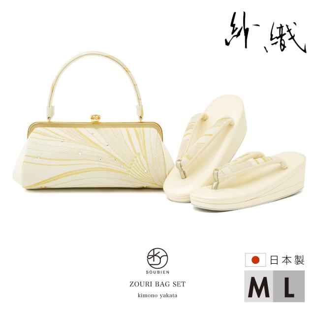 草履バッグセット レディース 礼装 留袖 訪問着 振袖 袴 ゴールド 金色 ホワイト 白 正絹 西陣織 フォーマル 紗織 Mサイズ Lサイズ 日本製 送料無料