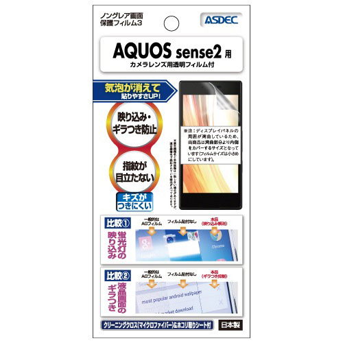 ASDEC(アスデック) AQUOS sense2(SH-01L/AQUOS sense2 かんたん/SHV43/SH-M08)用 ノングレア液晶保護フィルム3 NGB-SH01L返品種別A