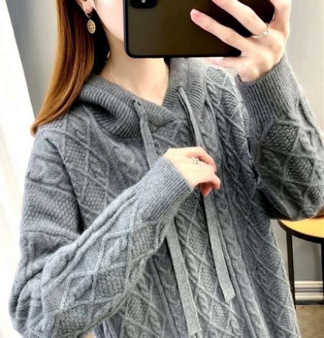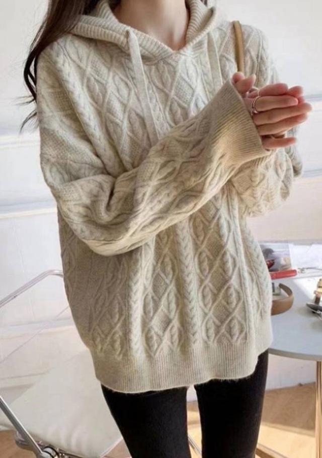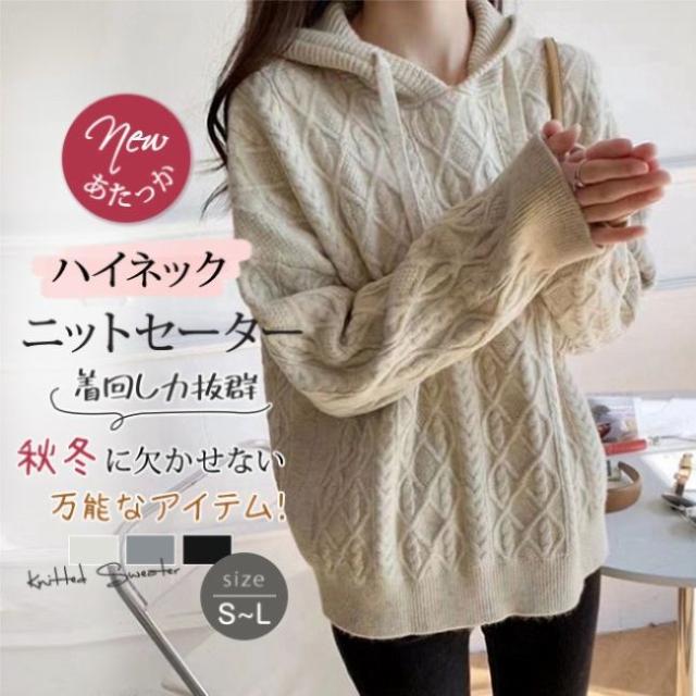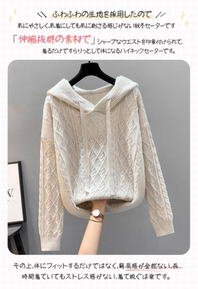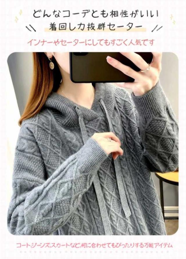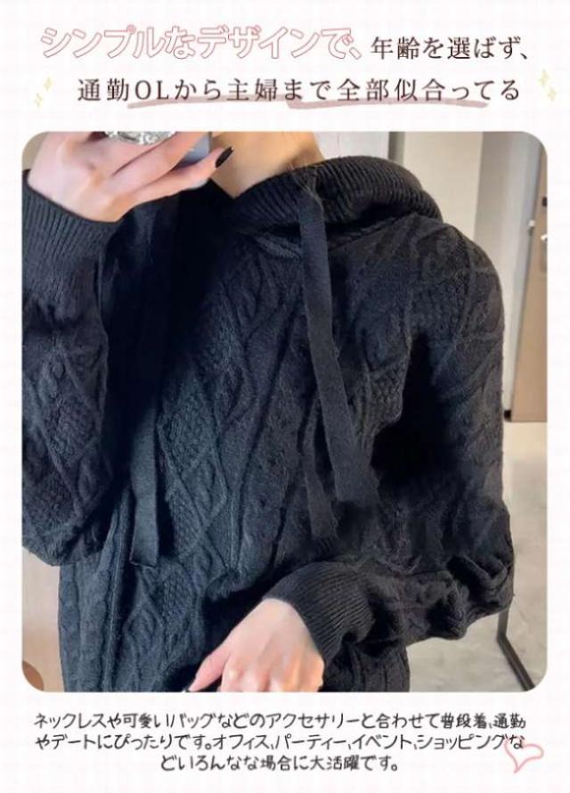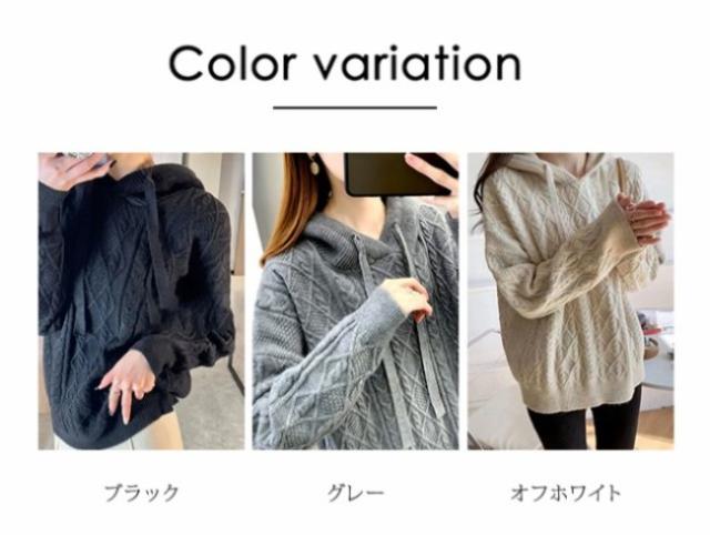 ニットパーカー レディース ニットセーター フード付き パーカー 長袖 秋 冬 ケーブル編み セーター プルオーバー シンプル スウェット ゆったり 無地