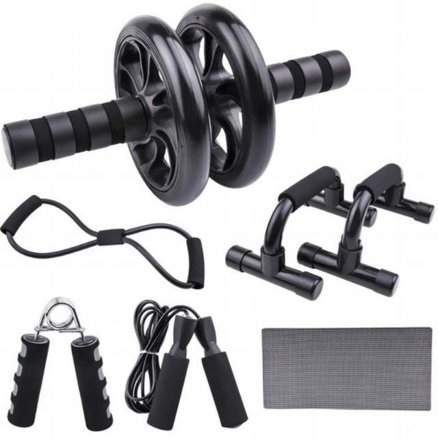 【送料無料】5in1筋トレセット 腕立て プッシュアップバー 腹筋ローラー ゴムチューブ 握力 ハンドグリップ 膝保護シート フィットネス エクササイズ ダイエット 筋トレ 5点セット