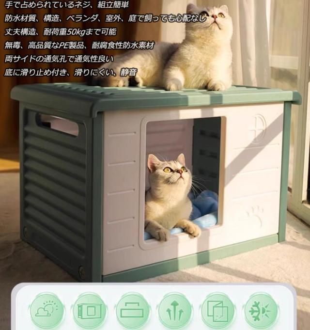 ペットハウス 猫ハウス キャットハウス 耐重 通気性 防寒 雨よけ 犬小屋 野良猫 避難所 屋外 防風 防雨 換気 組立簡単 洗え 小型犬 ねこハウス フェルトハウス ペットベッド グリーンド
