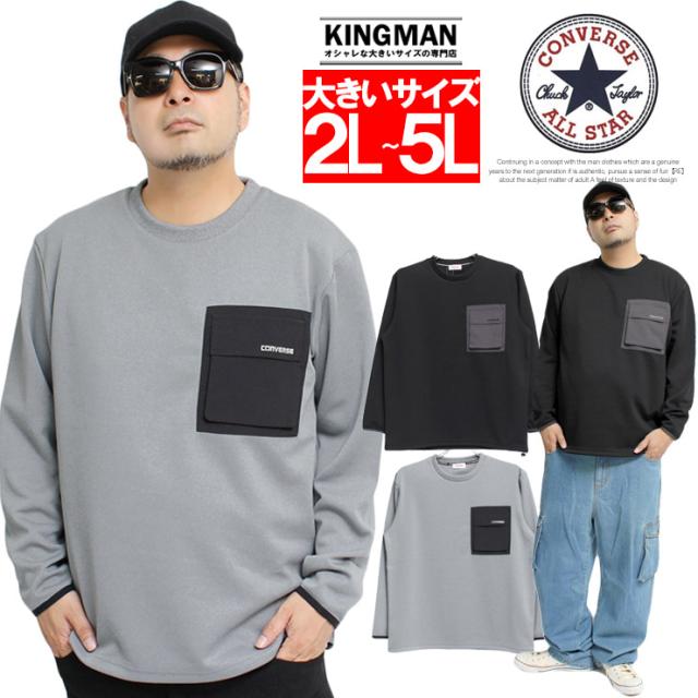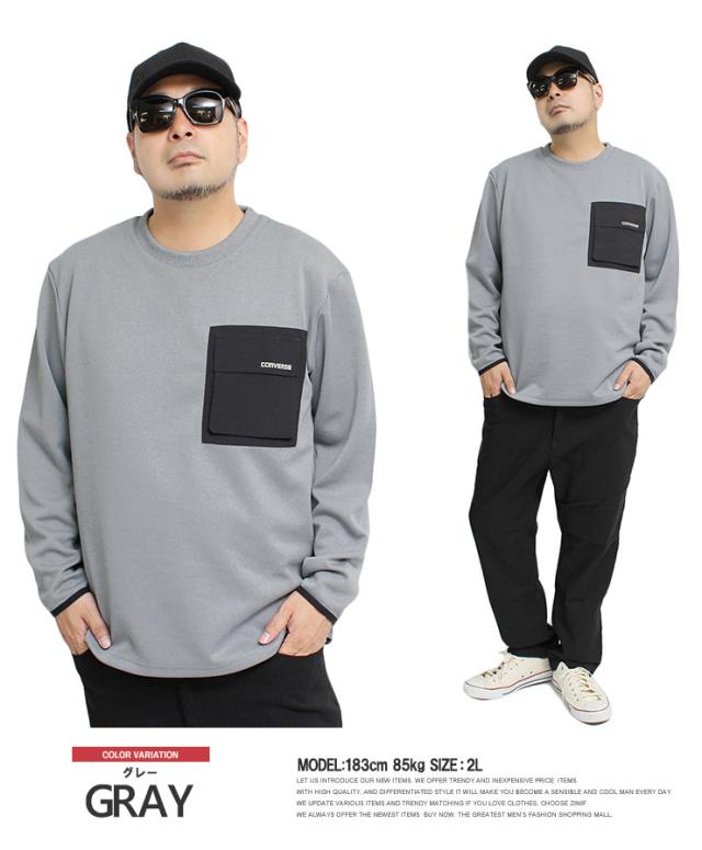 送料無料 コンバース(CONVERSE) ダンボール トレーナー メンズ 大きいサイズ ストレッチ ロゴ プリント ポケット付き クルーネック スウェット 薄手 伸縮 スエット ブランド トップス アウトドア スポーツ ジャージ ストリート系 ワークマン プラス サイズ