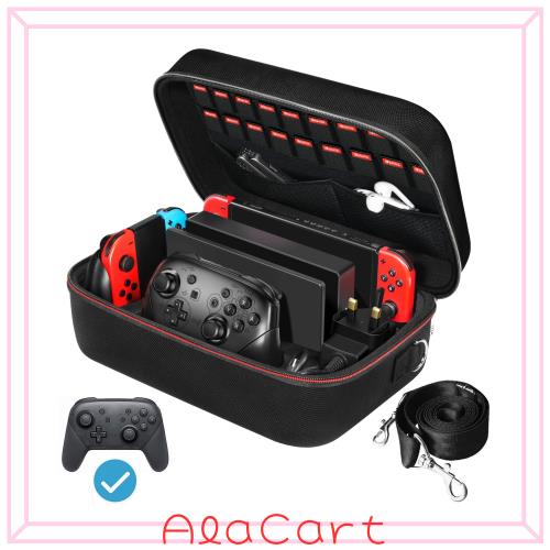 【持ち運び便利】このケースはゲーム用品を一括収納して、持ち手が付いて持ち運びもやすい!Switchケースはショルダーストラップが付き、身体に負担をかけずにサクサク移動できます、お必要に応じて肩掛け式または手提げ式をお選びください。自宅・出張・旅行時の保管・収納に実用的なバッグ、友達の家に持ってきて、一緒に遊ぶ!特徴: 1. 優れた保護 - ケースは頑丈で耐久性のある素材で作られています。 2. 大きな収納 - 大きなジッパー付きメッシュポケットは、充電ケーブル、スリムパワーバンク、イヤホン、予備のJoy-Consなどの小さな任天堂アクセサリーを安全に収納できます。 3. ゆったりとコンパクト - あらゆるスイッチケースに最大のアクセサリーポケットがついていますが、コンパクトで持ち運びに便利です。 4. ...