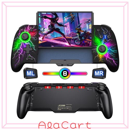 スイッチ コントローラー 8色RGBライト マクロ機能 携帯モード専用コントローラー for Switch グリップ コントローラープログラム編集機
