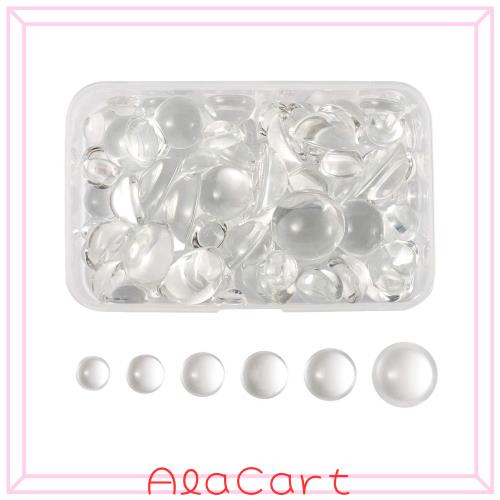 Beadthoven 約80個/箱 6サイズ 半円 クリア ガラスカボション ペースター 半球 ガラスドーム 透明 ビーズ モザイク スモールフラットバッ