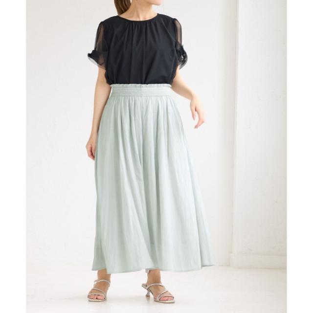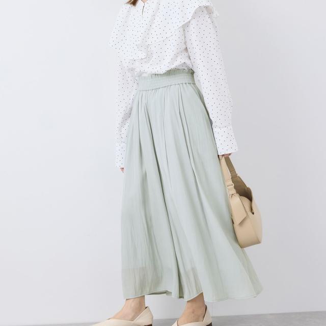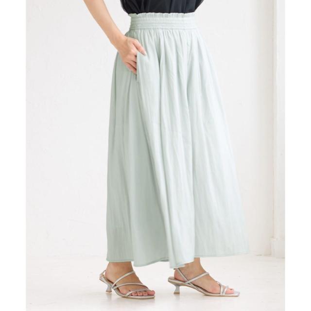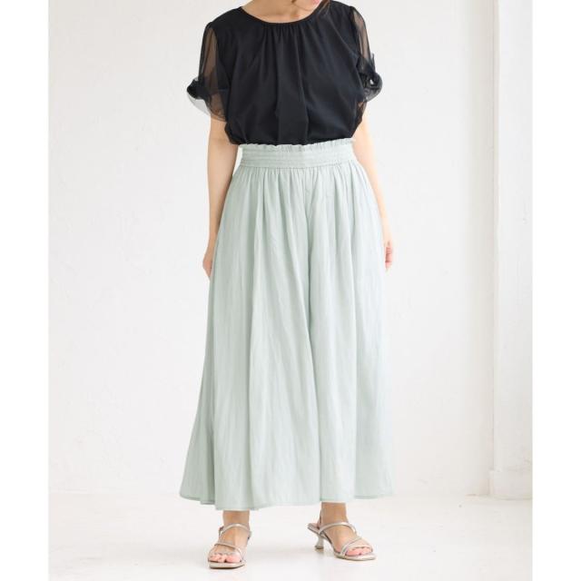 ・ギャザーウエストでお腹まわりがラクチン。