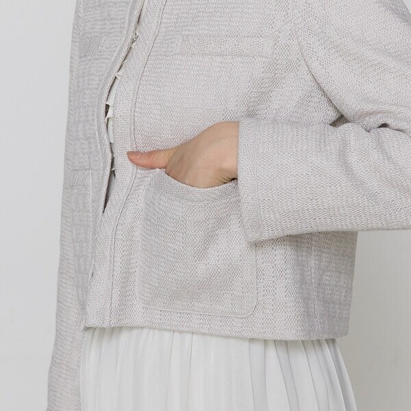 上品さを表現するディテールで、ポケットには丸みのあるディテールがフェミニンです。