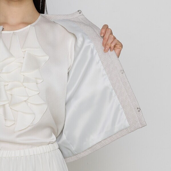 着丈は通常よりやや短め(着丈50cm)でコンパクトなサイズ感がクミシカルフェミニンな雰囲気です。