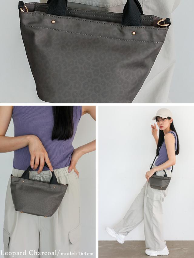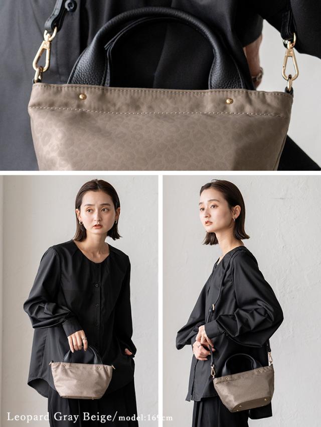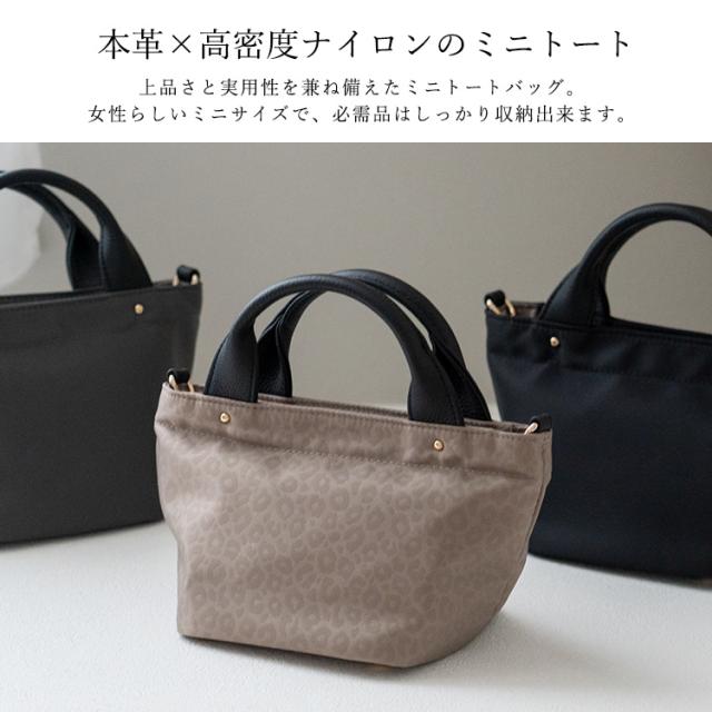 【本革×高密度ナイロン】トートバッグ レディース 軽量 小さめ ミニトートバッグ ファスナー付き ナイロン マチ広 自立 大容量 小さいサイズ 斜めがけ 2way ショルダーバッグ レオパード inb-10194z プレゼント
