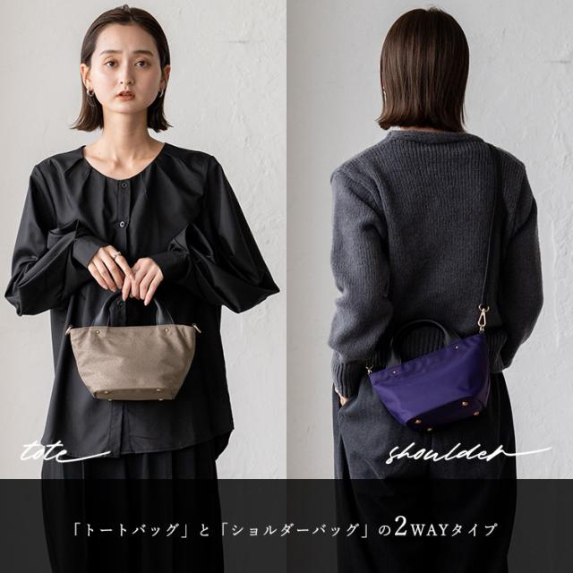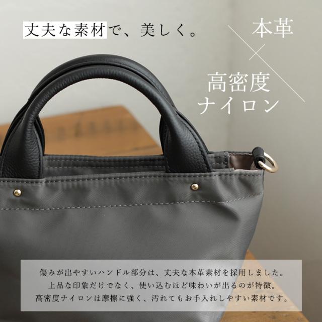 高密度ナイロン×本革ハンドルで使いやすさを追求した2WAYミニトートバッグ。