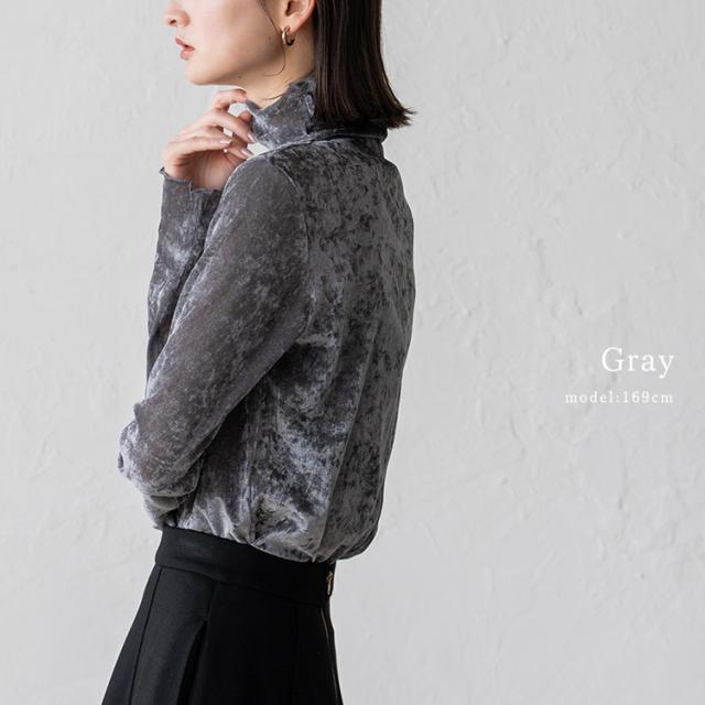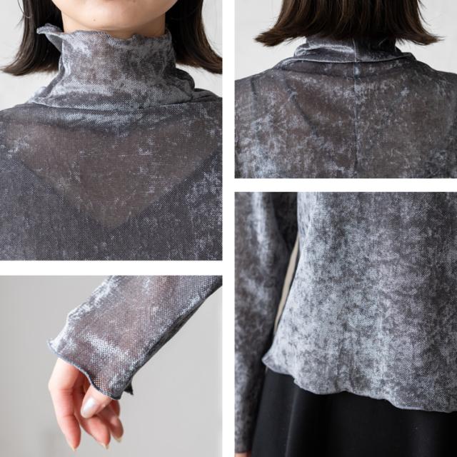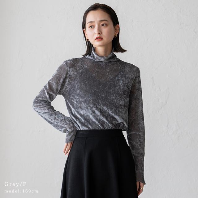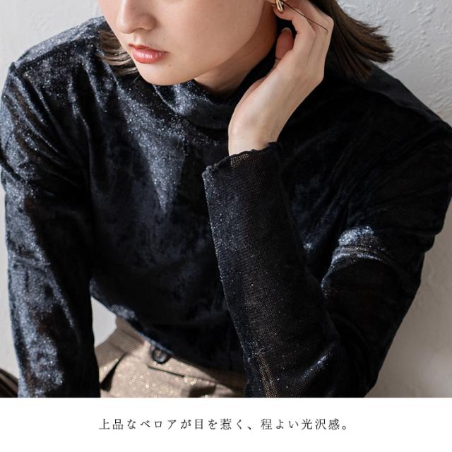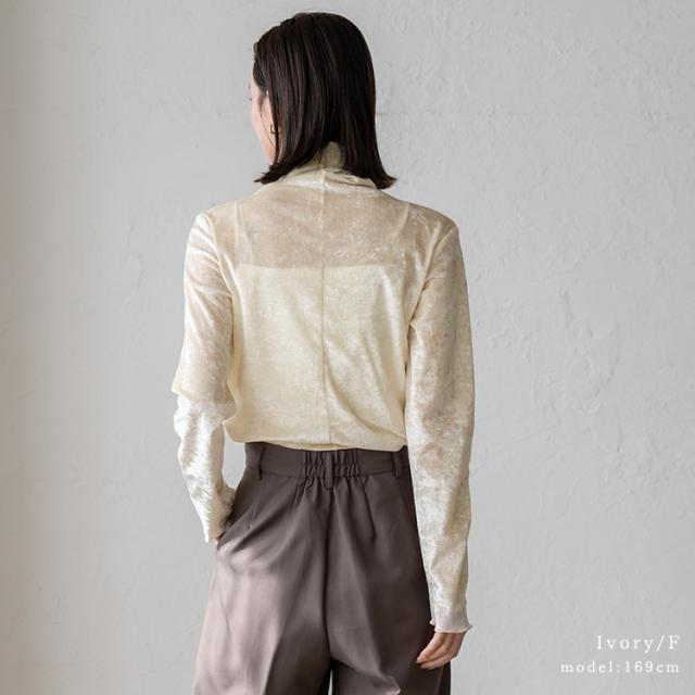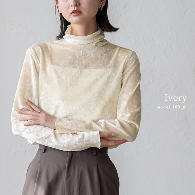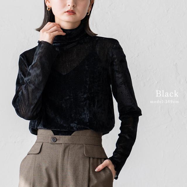 シアー トップス ベロア レディース 長袖 ハイネック インナー 透け ロンT フリル 透け感 シアー素材 プルオーバー レイヤード ロングスリーブ メロウ 重ね着 タイト 肌見せ 華奢見え おしゃれ 大人可愛い 着回し 秋冬【メール便】vkkc-0509