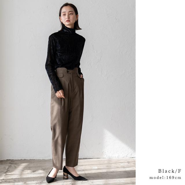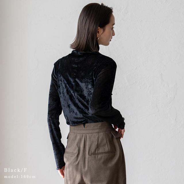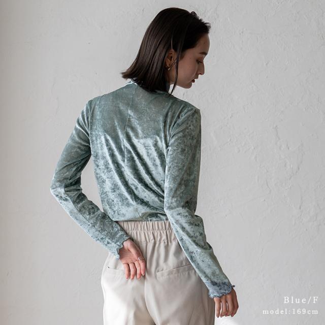 メローな印象とクラッシュ加工が今っぽいシアーベロア素材のカットソー。