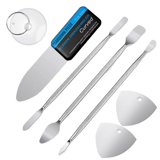 【商品仕様】薄い0.1mmスパッジャー×1、スパッジャー×2、金属ヘラ×3、吸盤オープナー×1。様々な分解をこれ1つの工具セットで解決できます。