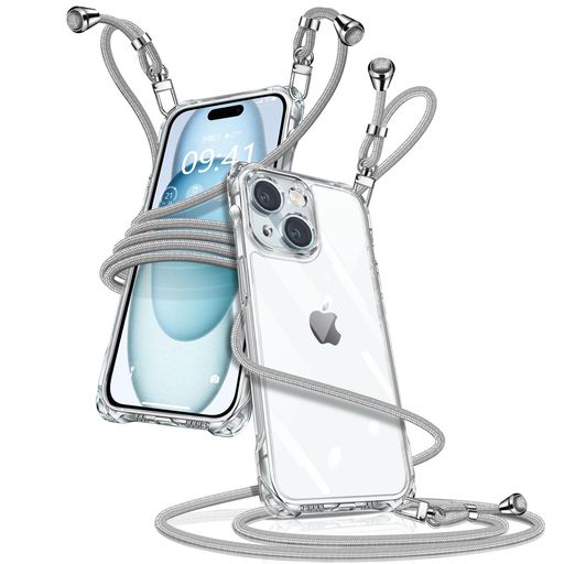 MUCIYAZI 用の IPHONE 15 PLUS ケース クリア ショルダー アイフォン15PLUS カバー 肩掛け 斜めかけ 縄掛けケース 透明 薄型 軽量 TPU 携帯ケース 紐付き 長さ調整可能 取り外し可能 落下防止 紛失防…