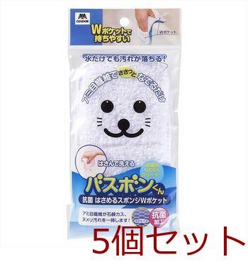 バスボンくん抗菌はさめるスポンジWポケットホワイト 5個セット 送料無料 即日発送