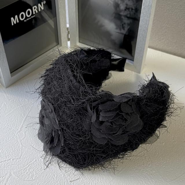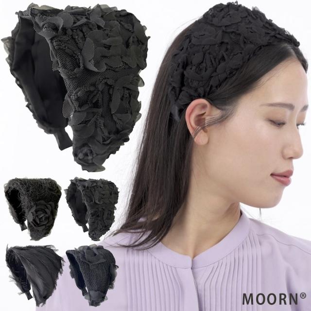 カチューシャ 幅広 黒 ブラック 韓国 花柄 幅広い 幅広 ヘッドアクセサリー 花 ヘアバンド ヘアアクセサリー ターバン 白髪隠し 薄毛隠し まとめ髪 普段使い 大人 可愛い おしゃれ 花モチーフ 結婚式 フォーマル プレゼント ブランド MOORN モーン