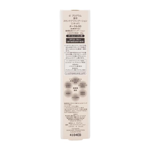 dprogram ディープログラム スキンケアファンデーション オークル00 リキッド 30g SPF20・PA++ 医薬部外品 スキンケア効果 [ギフトラッピング対応]