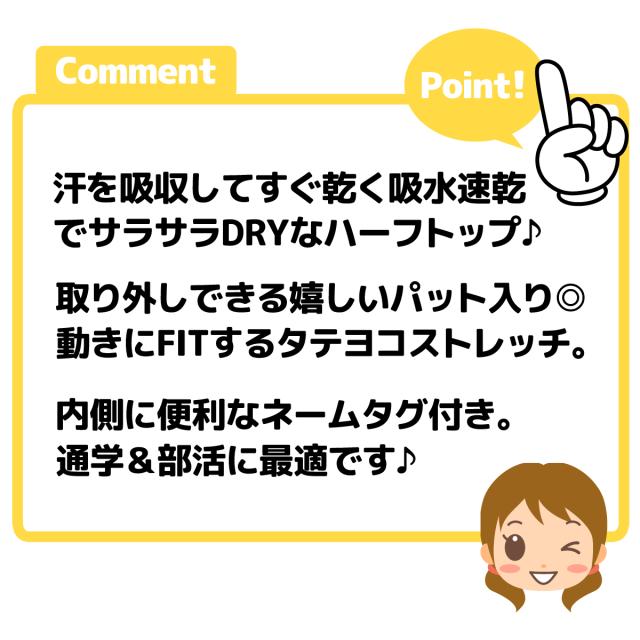 【送料無料】女児 ジュニア 吸水速乾 ハーフトップ DRY 取り外しできるパット入り ストレッチ 通学 部活 肌着 下着 インナー 子供 女の子 140cm 150cm 160cm 165cm yg-2729【メール便対応】