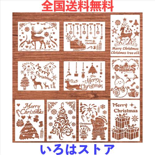 クリスマス 描画テンプレート 10枚セット ステンシルシート 描画 ステンシルプレート 製図ステンシル 透かし彫り クリスマスツリー トナ