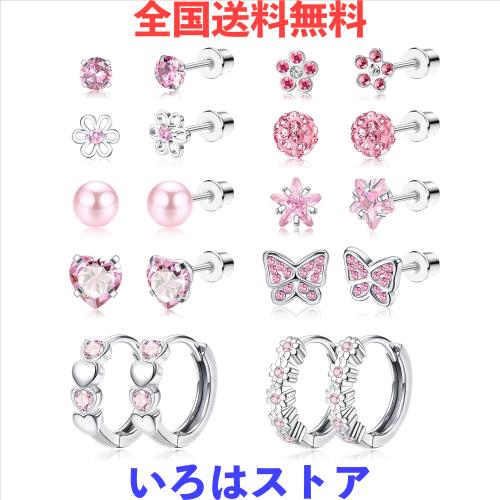 ?人気アイテム?ピアスは蝶、花、ハート、星、ボールのモチーフを使っております。8ペアスタッドピアスと2ペアフープピアスの組み合わせです。ジルコニアはピンクであり、鮮やかでキラキラと輝いています。美しい色合いがコーディネートのアクセントになります。