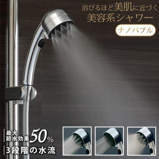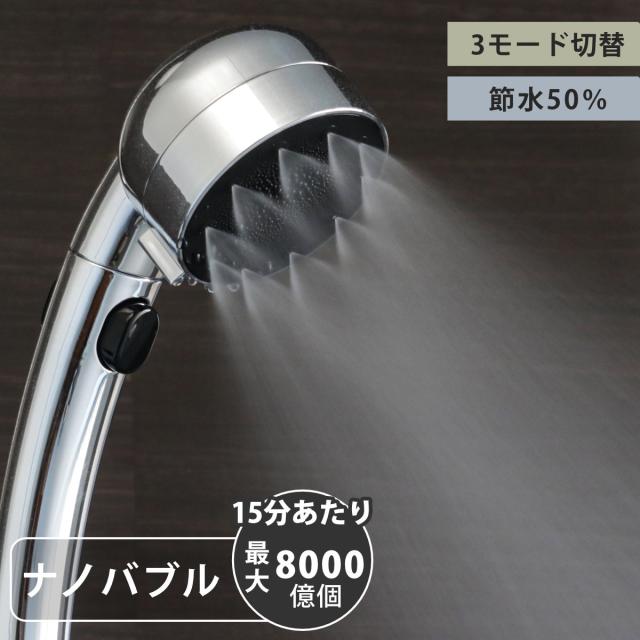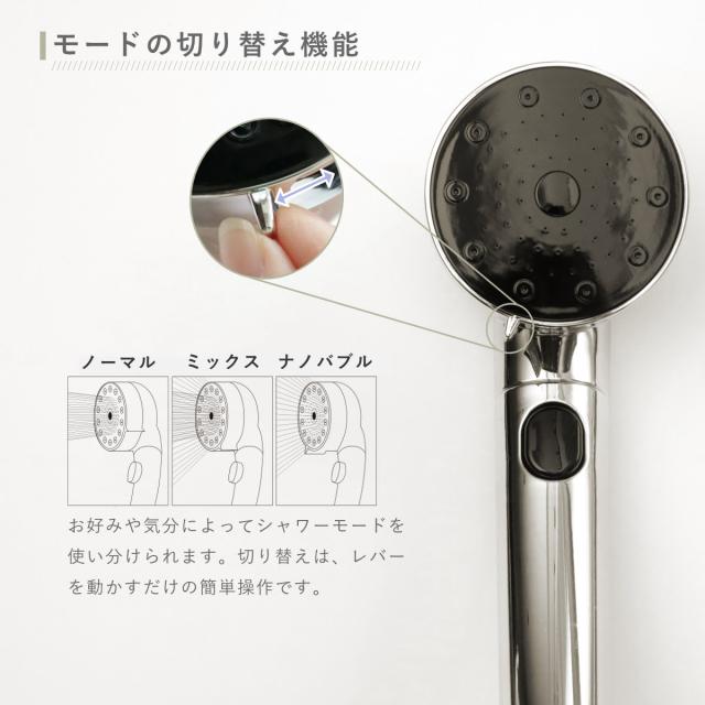 シャワーヘッド 極細ナノバブルシャワーヘッド ナノバブル 節水 ( シャワー ヘッド ストップ機能 節水効果 水流 3段階 付け替え 取り替え 交換 節水シャワーヘッド 節水シャワー ナノバブル発生 )