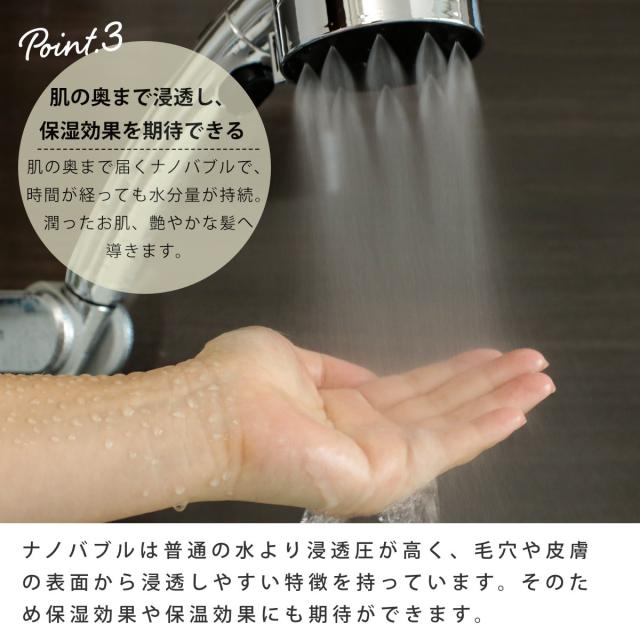 ナノバブルを発生させる、うるおい美容系シャワー