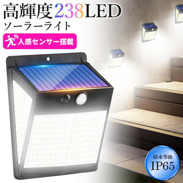 ソーラーライト センサーライト LEDライト ライト ガーデンライト 人感センサー 防犯 セキュリティ 防犯グッズ ソーラー ソーラーパネル 防水 壁付け 屋外 庭 ライトアップ 自動点灯 明るい 照明 238LED 簡単 屋外照明 太陽光発電 おしゃれ 電気代0円